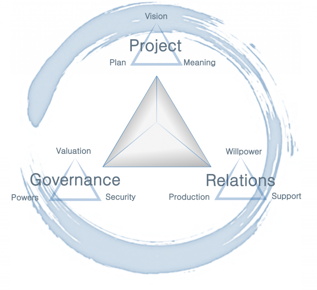 DRSO is an assessment tool based on the Systemic Resonance Model (MRS). It provides a comprehensive overview of nine strengths (Vision, Plan, Meaning, Willpower, Support, Production, Valuation, Powers and Security) organised around three areas (Project, Relations and Governance).